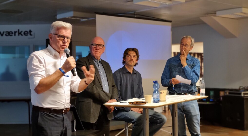 Fra venstre: Peter Birch, Hans- Henrik Nielsen, Daniel Steinvig og moderator Thomas Ravn-Pedersen, direktør i Verdens Bedste Nyheder.